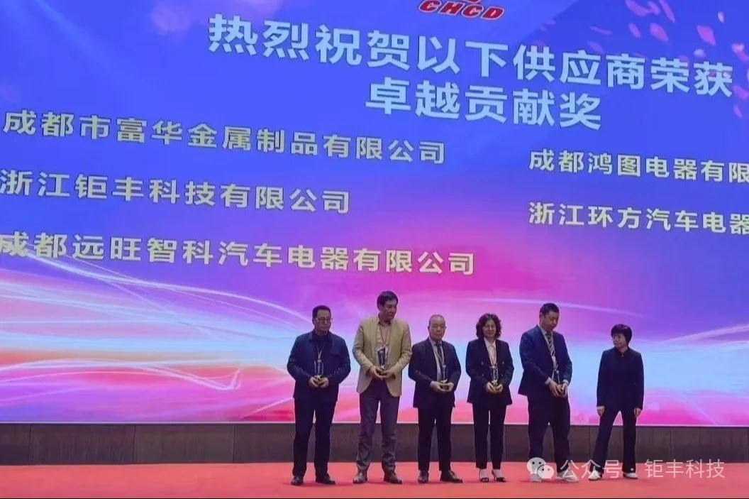 Dňa 29. marca 2025 sa zástupcovia spoločnosti Zhejiang Jufeng Technology Co., Ltd. vybrali do Čcheng-tu, aby sa zúčastnili na výročnej dodávateľskej konferencii spoločnosti Chengdu Huachuan Electrical Equipment Co., Ltd. a získali ocenenie „Ocenenie za vynikajúci prínos“.